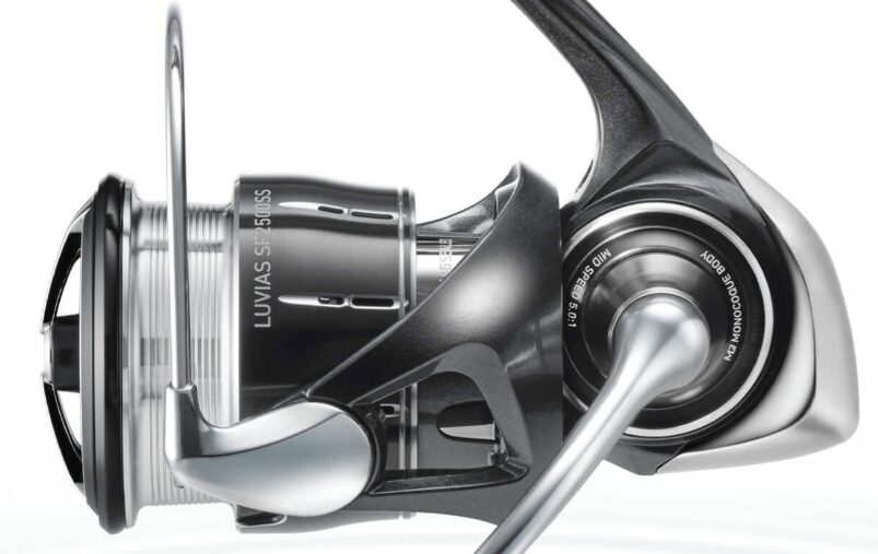 また、LUVIAS SFはライトライン専用機として、フロロカーボン・ナイロンラインは4lb以下、PEラインは0.6号以下の使用を推奨しています。このライン設定により、ライトリグやマイクロスプーンといった軽量ルアーを使った釣りで、極限まで繊細なアプローチが可能となります。さらに、スプールのショート化によってフェザリング性能が向上し、正確なキャストアキュラシーとラインコントロールを実現。軽量化されたボディとの相乗効果で、軽量ロッドとのバランスも最適化され、スイングスピードが約12%向上、飛距離も約7%アップしました。これにより、軽量ルアーを遠投し、狙ったポイントをピンポイントで攻めることができます。